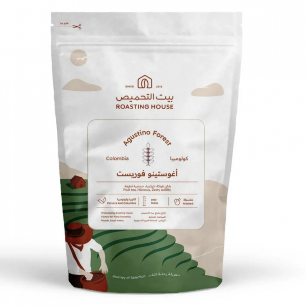 تزرع تلك القهوة على ارتفاعات تصل الى 1900 متر عن سطح البحر في غابة أغوستينو، بمنطقة هويلا جنوب غرب كولومبيا، وتزرعها جمعية كو أغوستينوس التعاونية التي تعمل على تطوير البنية التحتية في مزارع أعضاء الجمعية وتقديم التدريب في سبل الزراعة والحصاد والتنقية للمساهمة في استمرارية تحسين الانتاج وديمومة البيئة الزراعية هناك. يعطي هذا المحصول طعم حمضي لطيف وايحاءات من شاي الفواكة والكركدية